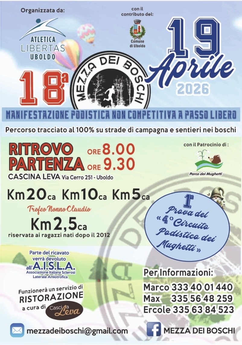 18ª mezza dei boschi domenica 19 aprile, manifestazione podistica non competitiva a passo libero.